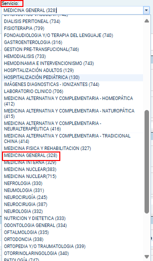 Médico: campo desplegable. Se muestra la lista de médicos disponibles.