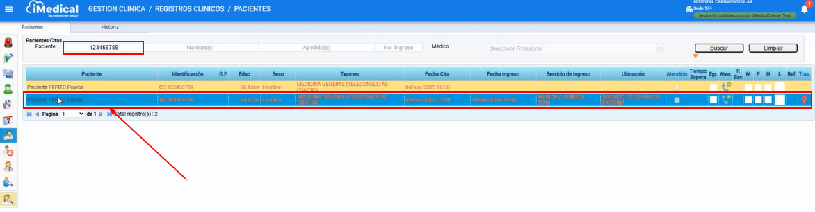 En la siguiente pantalla nos aparece el paciente y seguidamente debemos dar clic sobre este