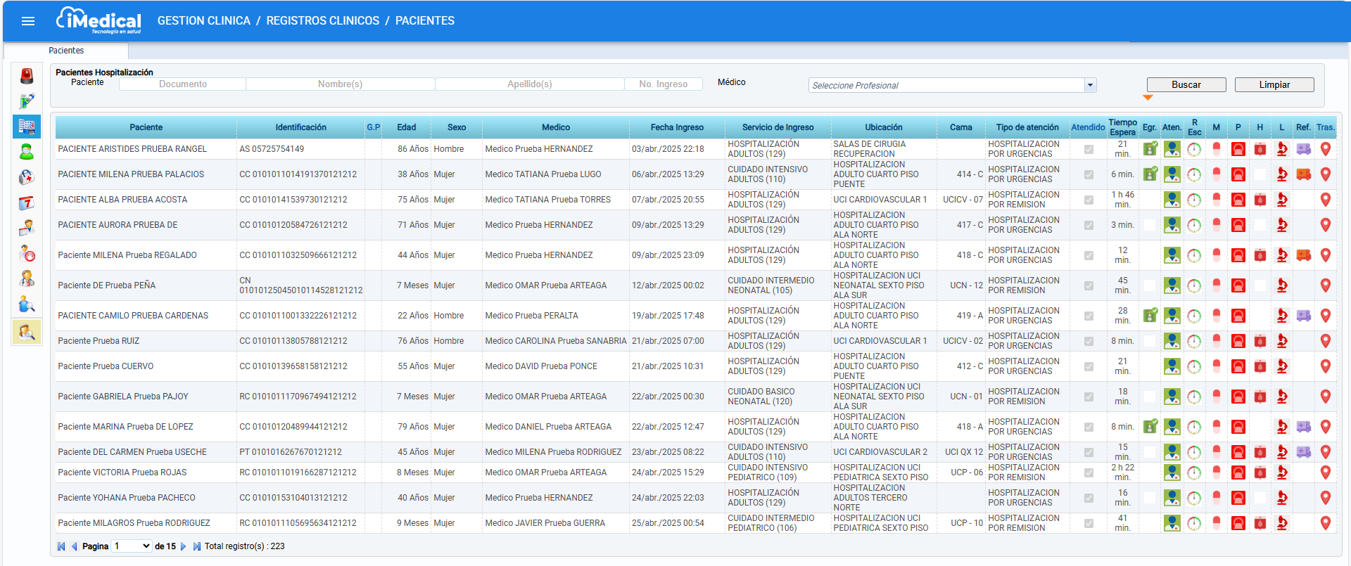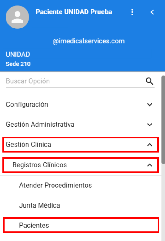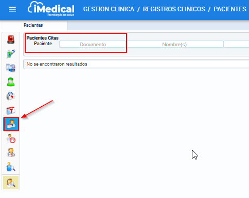 Al ingresar en la Ruta: Gestión Clínica > Registros Clínicos > Pacientes