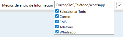 Medios de envío de Información: Campo desplegable que permite seleccionar el medio utilizado para el envío de información. Se presenta como lista de opciones y funciona como filtro adicional para delimitar los resultados del reporte.