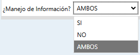 ¿Manejo de Información?: Campo desplegable de selección única. Permite elegir un criterio específico relacionado con el tratamiento o estado del manejo de información.