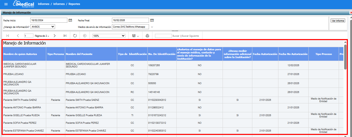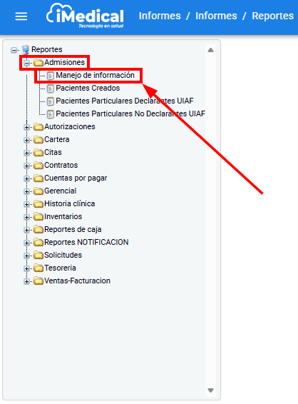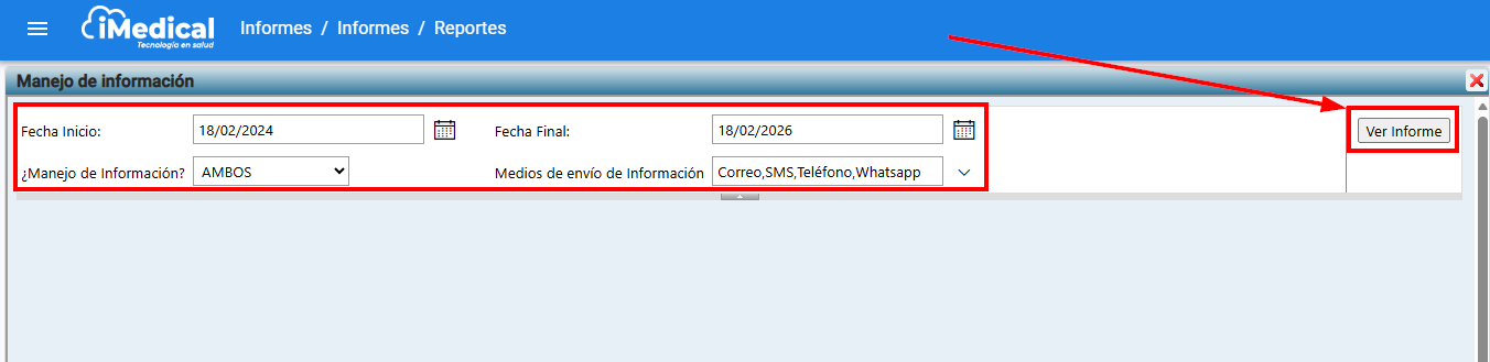 Para facilitar la consulta de las personas encargadas del seguimiento de la entidad, el sistema iMedicalCloud le permite consultar por medio del reporte manejo de información.