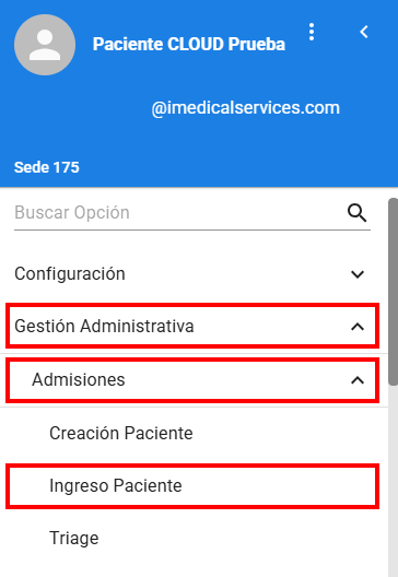 Siguiendo la Ruta: Gestión Administrativa > Admisiones > Ingreso Pacientes
