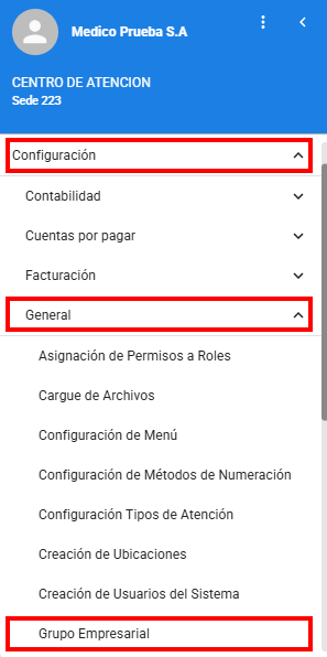 Para la configuración de Protección de Datos, inicialmente se deberá crear y/o configurar unas variables. Para ello se debe seguir la siguiente Ruta: Configuración > General > Grupo empresarial