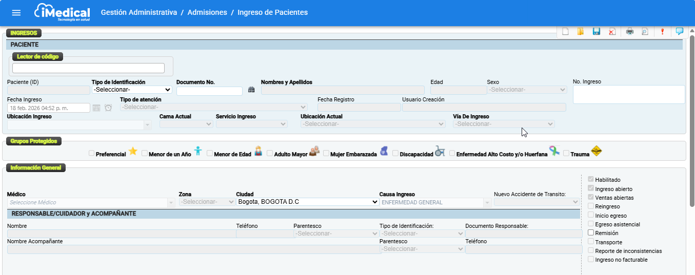 Para poder guardar el ingreso iMedical tomará las siguientes validaciones: