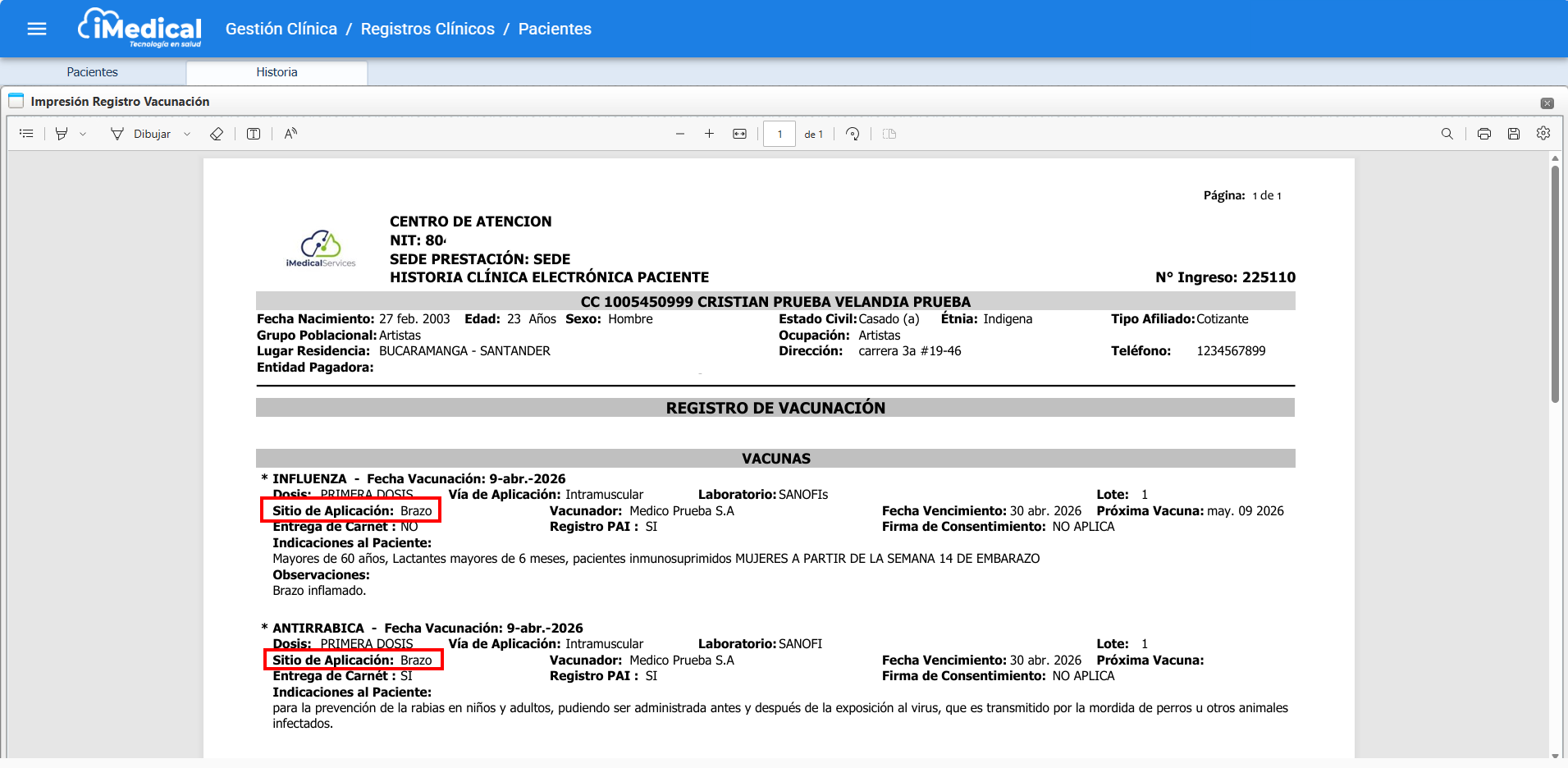 💡 ¿Qué beneficios trae esta mejora? ✔ Mejora la trazabilidad del procedimiento de vacunación. ✔ Garantiza coherencia entre los datos registrados y los documentos generados. ✔ Facilita auditorías clínicas. ✔ Mejora la calidad del registro clínico. |