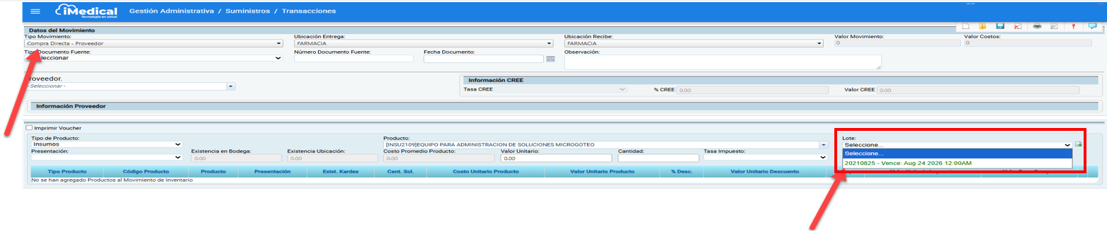 📍 Ruta: Gestión Administrativa / Suministros / Transacciones de inventario