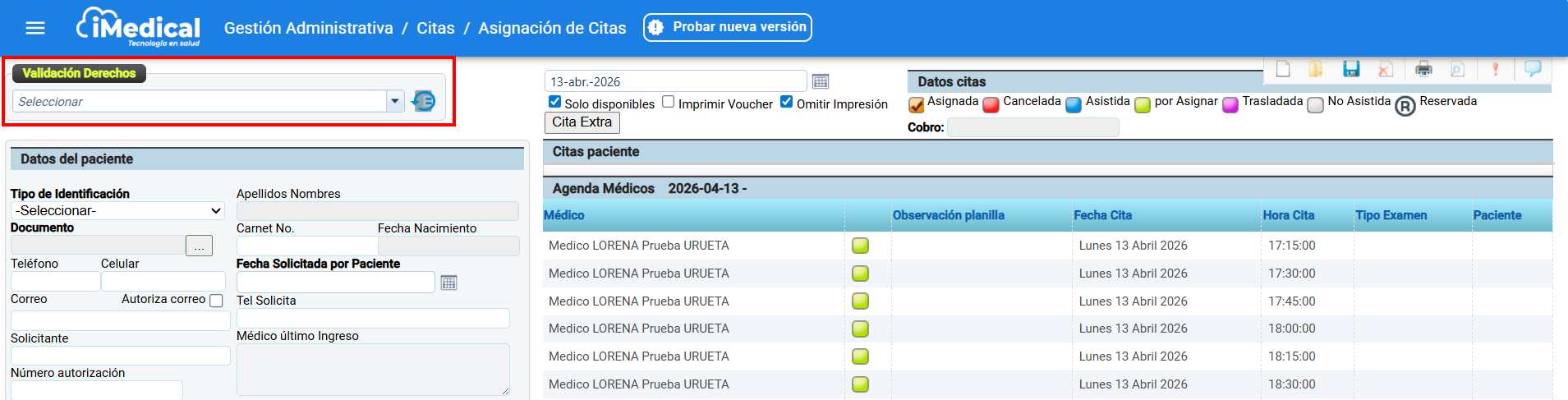 📍 Ruta: Gestión Administrativa / Citas / Asignación de citas