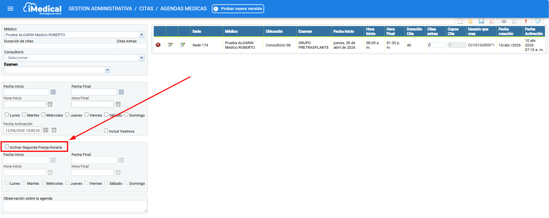 📍 Ruta: Gestión Administrativa / Citas / Agendas medicas