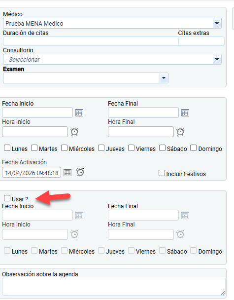 Ajuste de etiqueta funcional en configuración de agendas médicas (segunda franja horaria) |