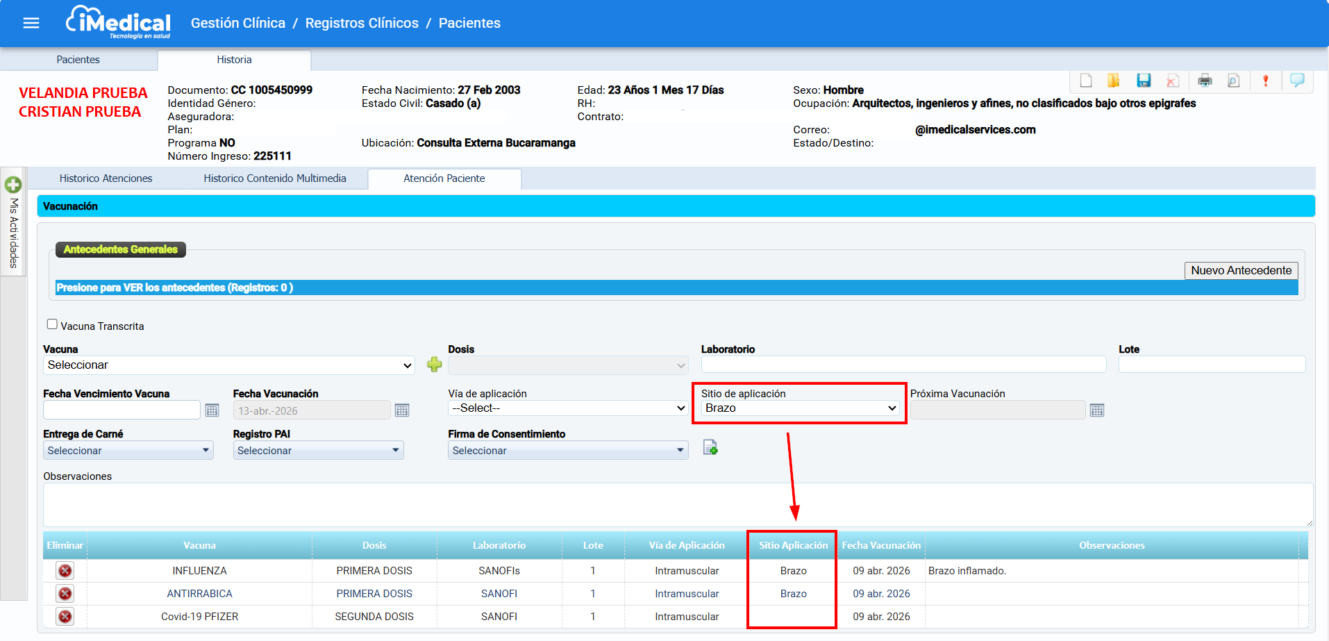 📍 Ruta: Gestión Clínica / Registros Clínicos / Pacientes / Vacunación