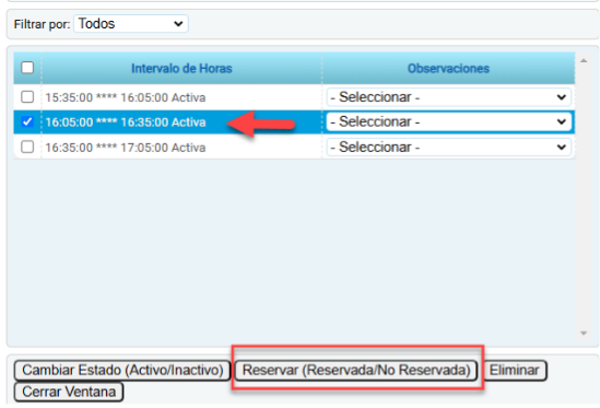 Hecho esto, de clic en el botón "Reservar (Reservada/No Reservada)"