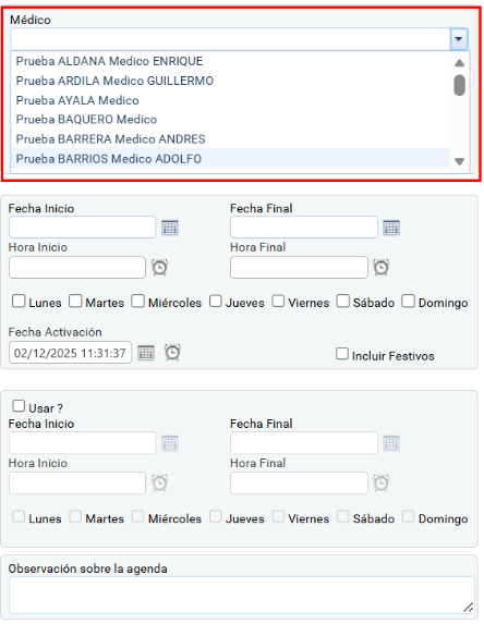 Medico: Campo desplegable de única selección que permite elegir el medico