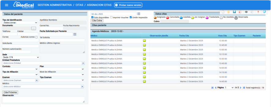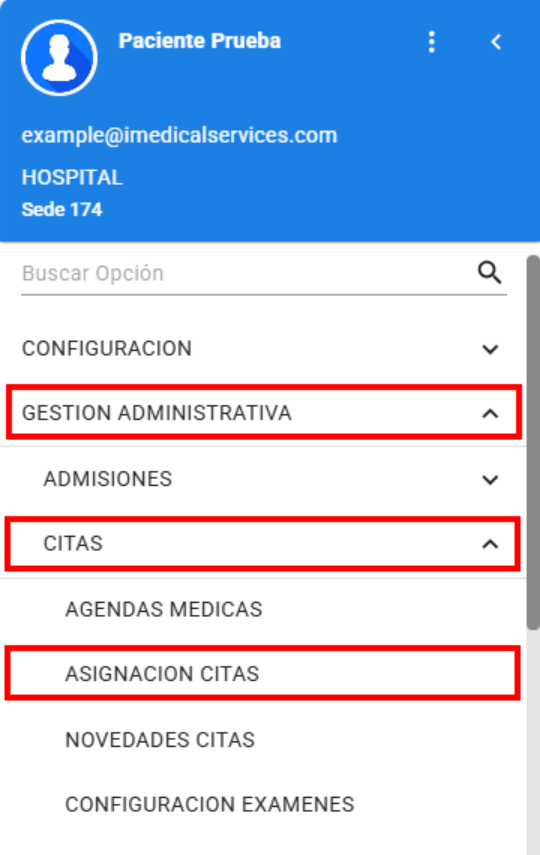 Seguir la ruta: Gestión Administrativa > Citas > Asignación Citas