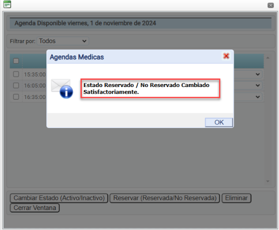Haga clic en el botón "Reservar (Reservada/No Reservada)" ubicado en la parte inferior de la ventana.