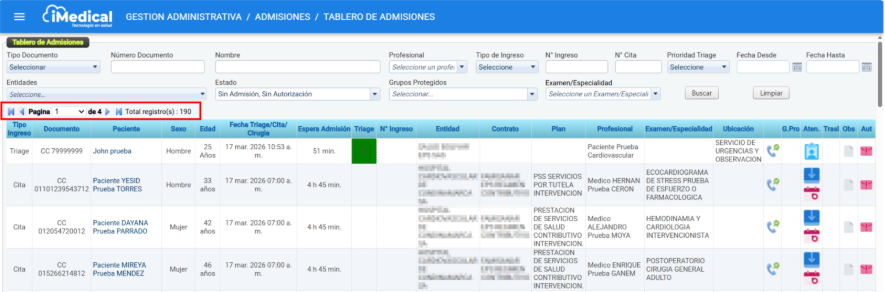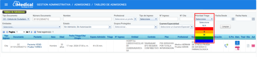 Prioridad Triage: Aquí puede seleccionar el filtro por triage, lo cual le mostrará los diferentes tipos desde I, II, III, IV, V.