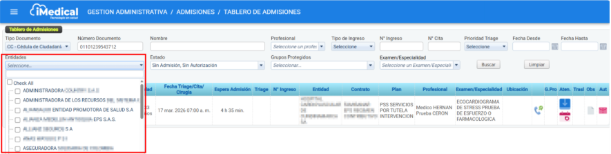 Entidad: Este mostrará la empresa la cual está financiando al paciente o EPS