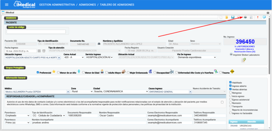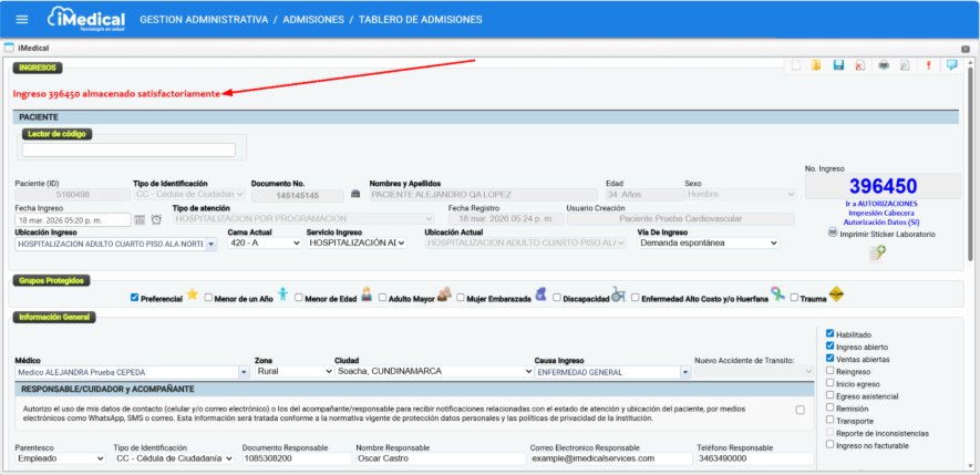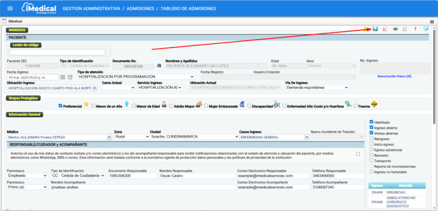 Una vez haya completado todos los campos obligatorios, genere el ingreso dando clic en el icono de Guardar.