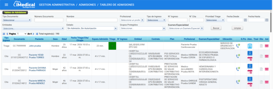 El presente manual tiene como objetivo orientar a los usuarios en el uso adecuado del Tablero de Admisiones, una herramienta diseñada para facilitar la visualización, seguimiento y gestión de la información relacionada con los procesos de admisión de pacientes. A través de esta funcionalidad es posible consultar, filtrar y administrar de manera centralizada los registros asociados a triage, citas y programaciones de cirugía.