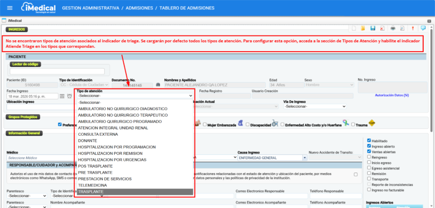 Para conocer el proceso de la configuración de los tipos de atención, consulte el siguiente manual: https://soporte.imedicalservices.com/portal/es/kb/articles/configuraci%C3%B3n-de-tipos-de-atenci%C3%B3n