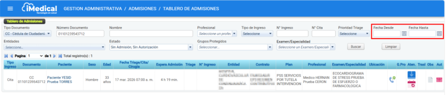 Fecha Desde: Se filtrará los registros de esa fecha hasta máximo 3 días después