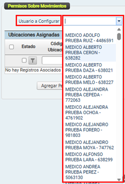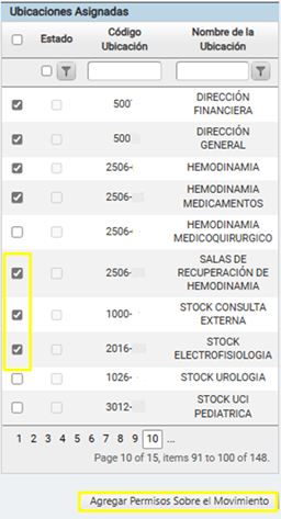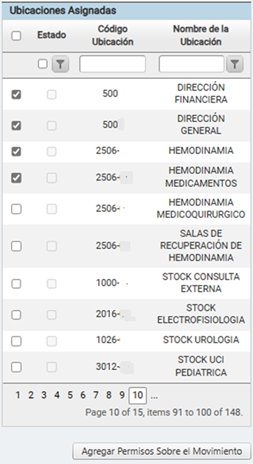 sistema mostrará los permisos sobre las ubicaciones asignadas a ese usuario
