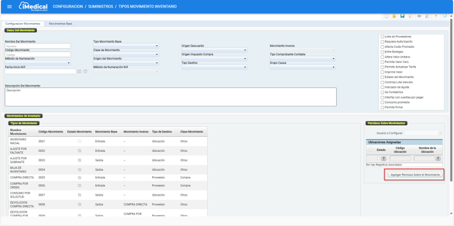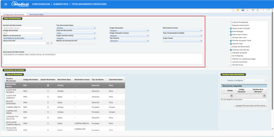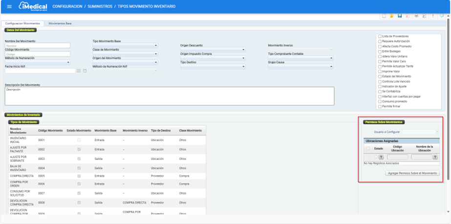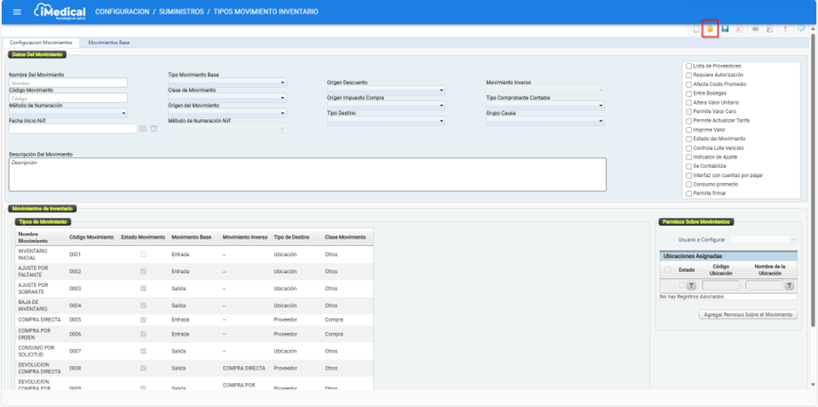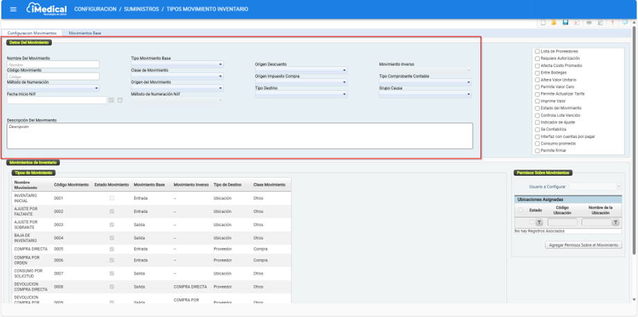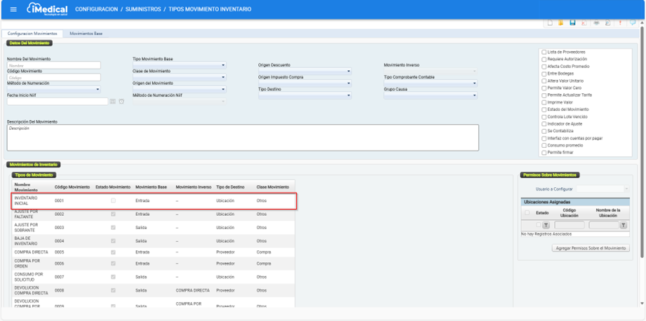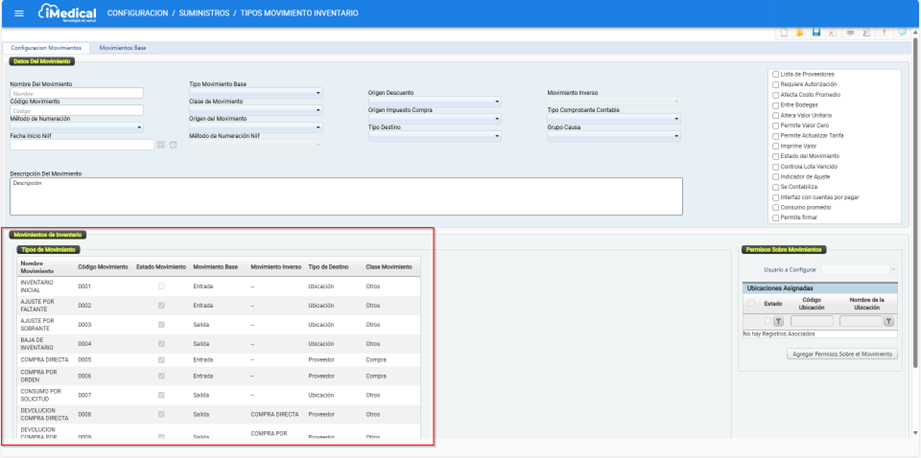 En iMedical existen una serie de movimientos de inventario predefinidos que permiten llevar a cabo las transacciones relacionadas con el manejo de productos, tales como insumos o medicamentos. Estos movimientos son fundamentales para la gestión operativa del inventario, ya que permiten registrar entradas, salidas, devoluciones, compras, ajustes y otros procesos relacionados.