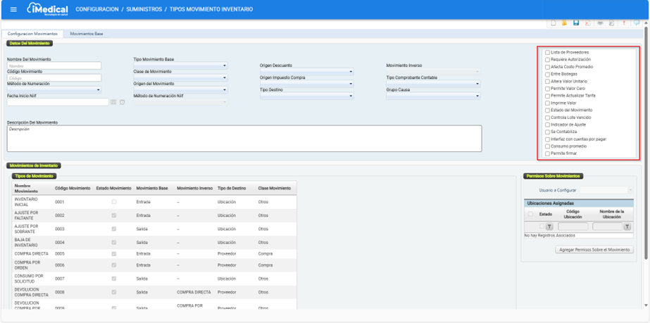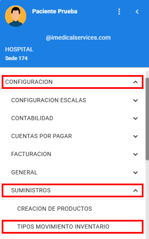 Configuración > Suministros > Tipos Movimiento Inventario