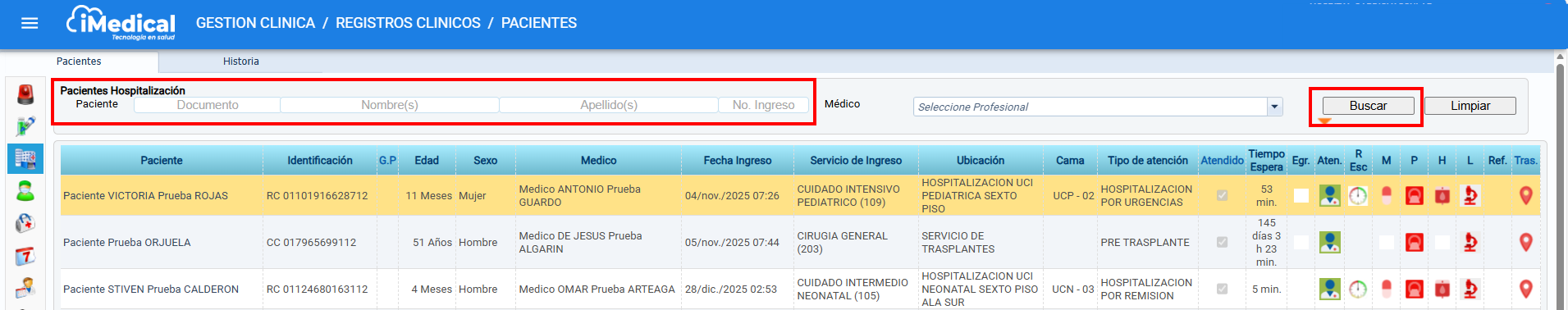 Una vez se acceda a la ruta indicada, se mostrará la siguiente pantalla. Debe seleccionar o buscar al paciente requerido.