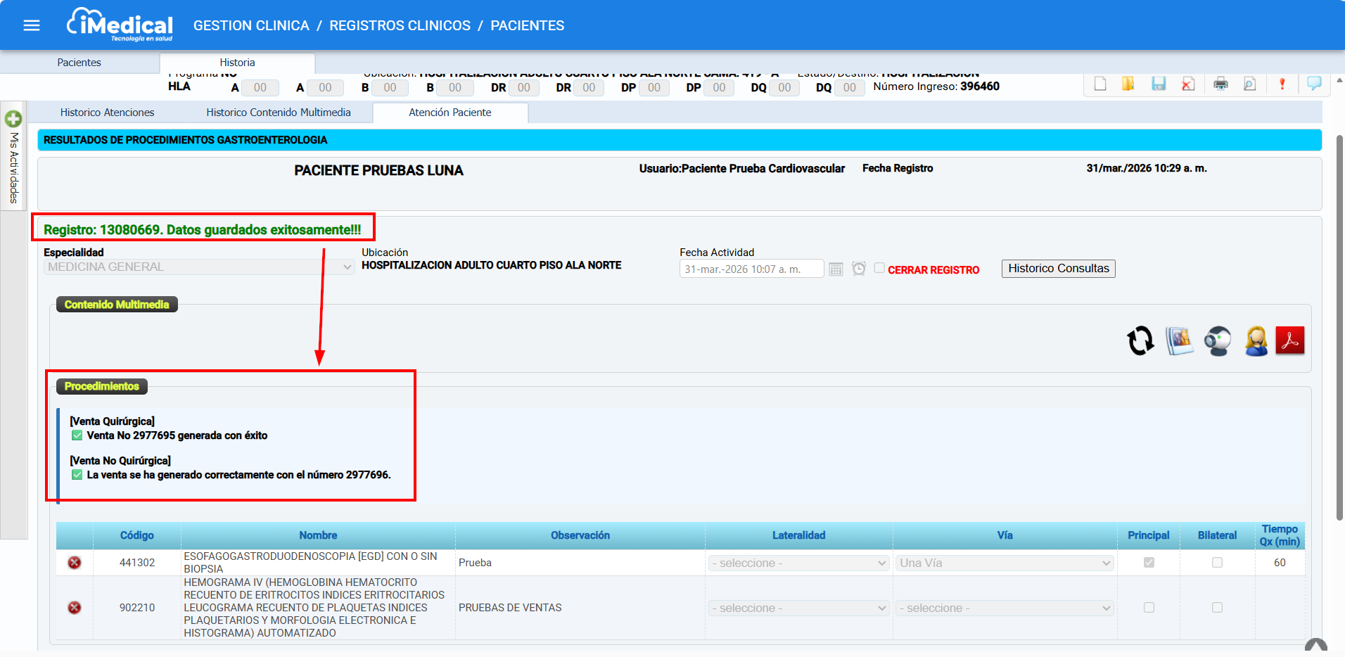Al hacer esto, el sistema generará las ventas automáticas correspondientes de los procedimientos registrados.