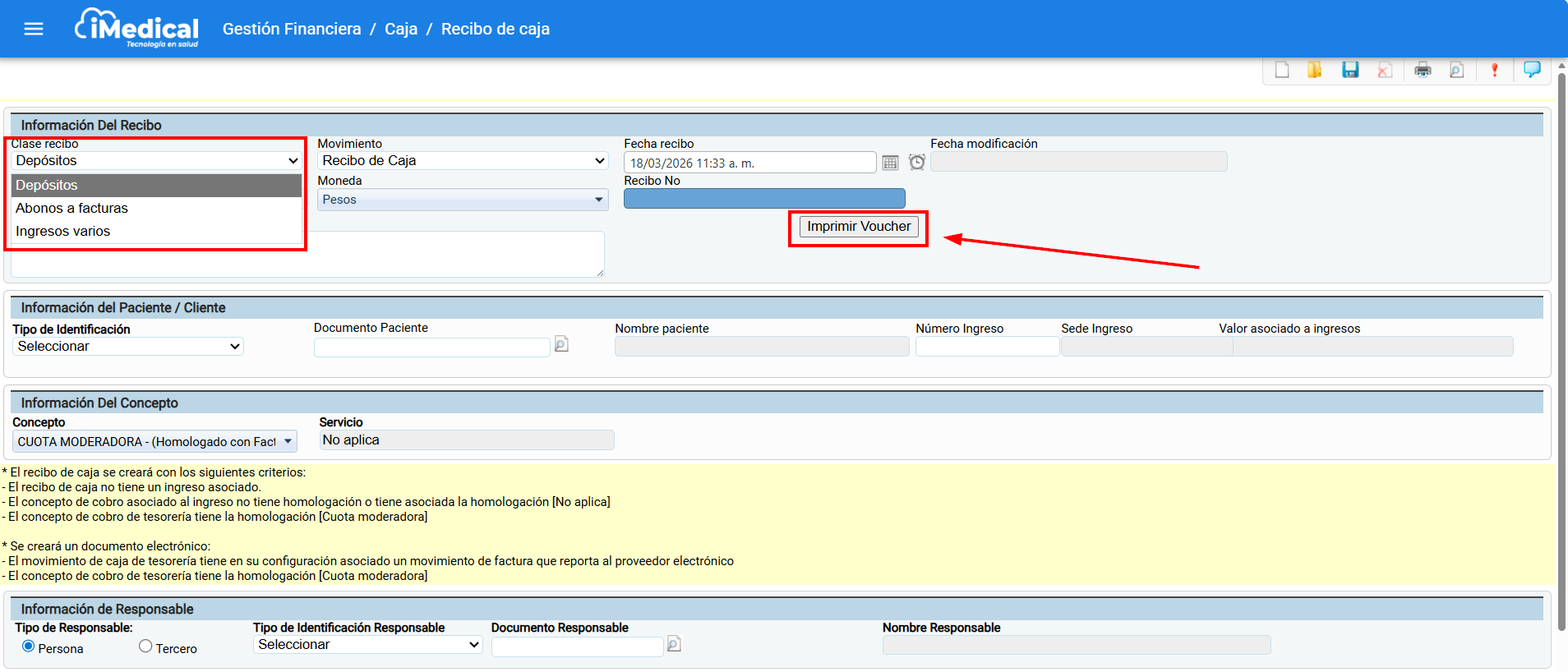 Seleccionamos el movimiento, la fecha del recibo, moneda y el número de recibo y damos clic en imprimir voucher