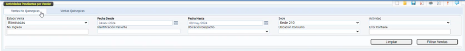 Las ventas que no se logran realizan quedan en esta pantalla y se divide en dos pestañas ventas no quirúrgicas y ventas quirúrgicas, llenamos los respectivos datos y damos clic en filtrar.