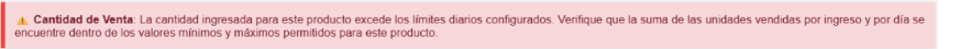 Si solicita una cantidad superior a la configurada, el sistema arrojará la siguiente alerta: