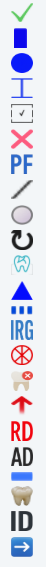Seleccione la o las convenciones clínicas a tratar en el diente dando clic sobre cada uno de los iconos:
