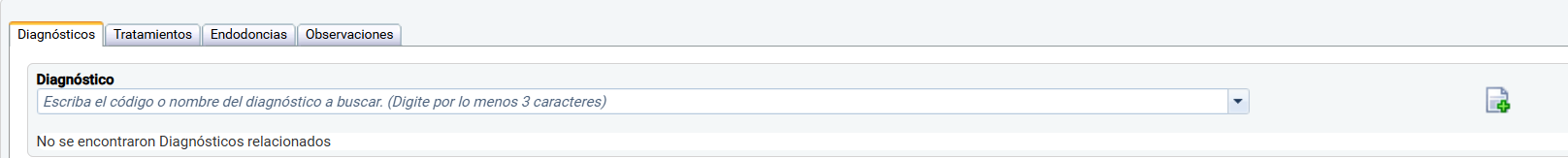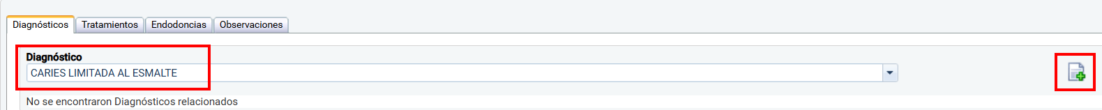 En la pestaña "Diagnósticos", seleccione el diagnostico identificado al diente en el campo: