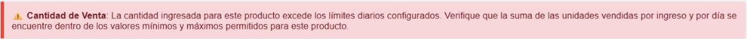 Si solicita una cantidad superior a la configurada, el sistema arrojará la siguiente alerta: